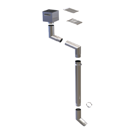 Tubo de aluminio con clip que permite la conducción del agua desde el canalón hasta el sistema de desagüe correspondiente.